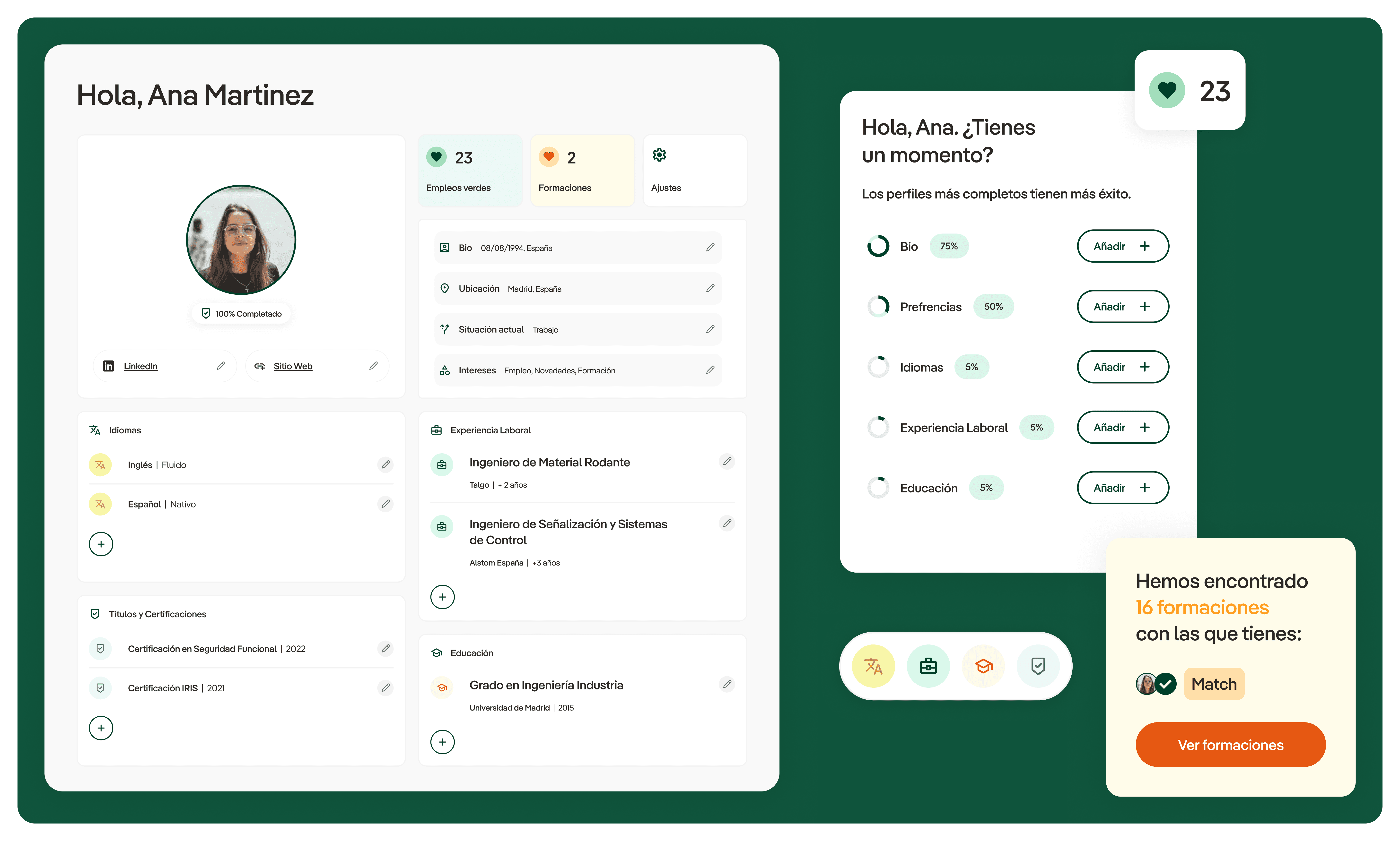 The project delivered a structured platform that supports discovery of green economy opportunities while strengthening Iberdrola’s communication around the energy transition. Users can explore job opportunities, training programs, and educational pathways through a clear and accessible interface designed to support both employment discovery and institutional storytelling. The platform also established a consistent design system and interaction framework that supports the long-term evolution of the initiative.