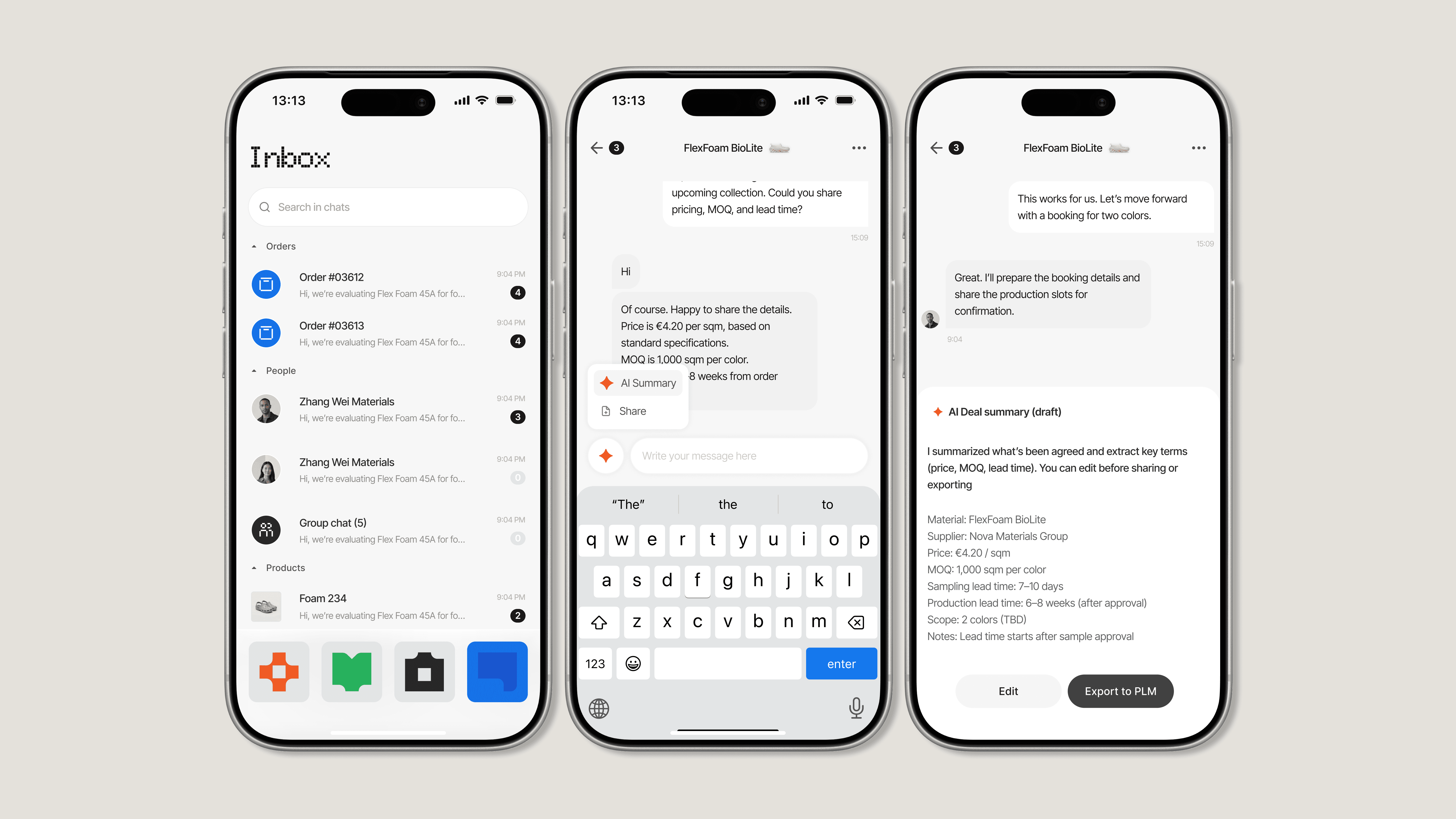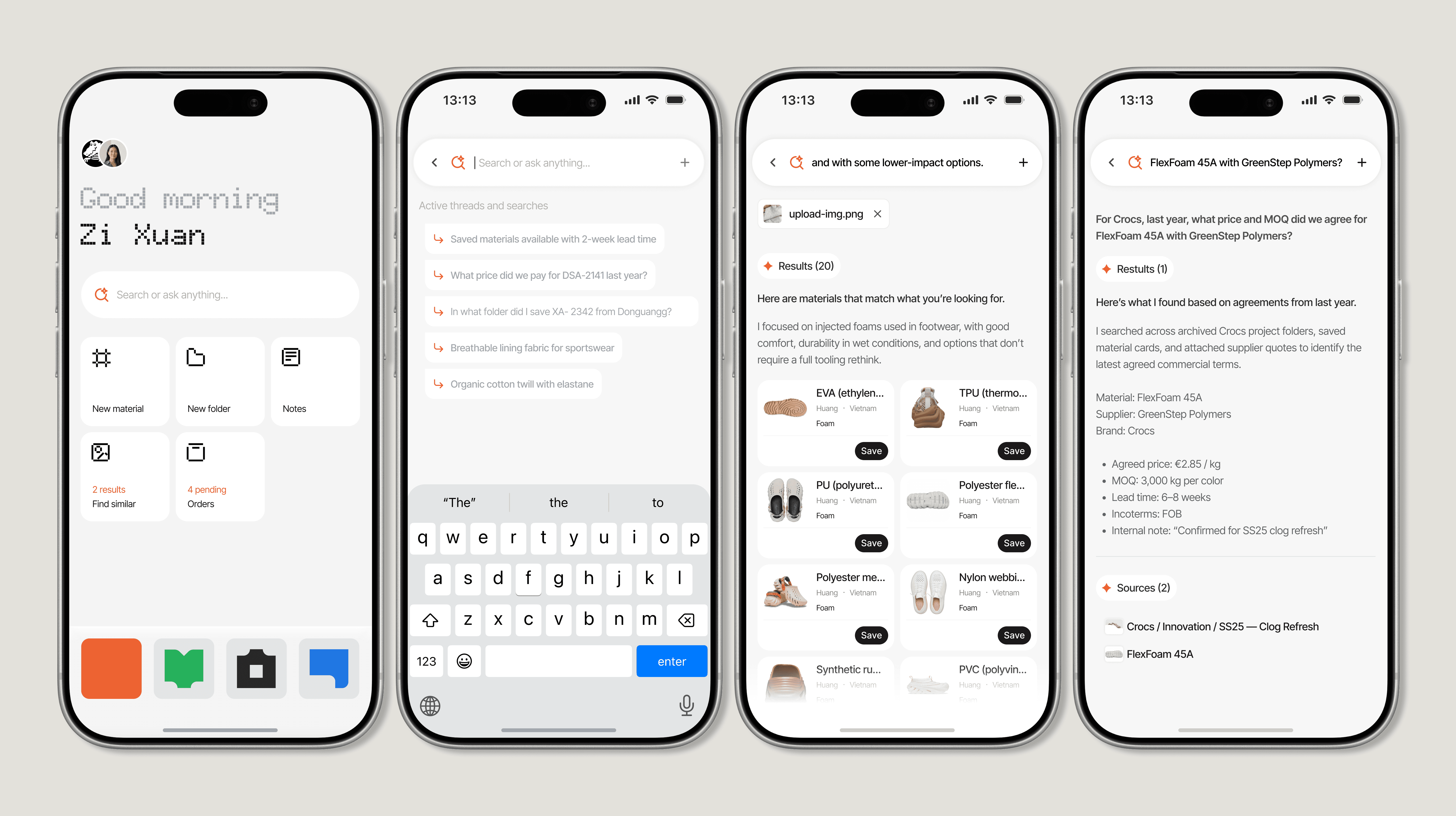 The work created a coherent platform foundation connecting discovery, supplier communication, sampling, and sustainability data. Brands could navigate material datasets more easily, collaborate with suppliers more effectively, and reduce the fragmented workflows common in textile sourcing. Internally, improved product structure, clearer design practices, and AI-assisted workflows helped the team move faster while maintaining product quality.