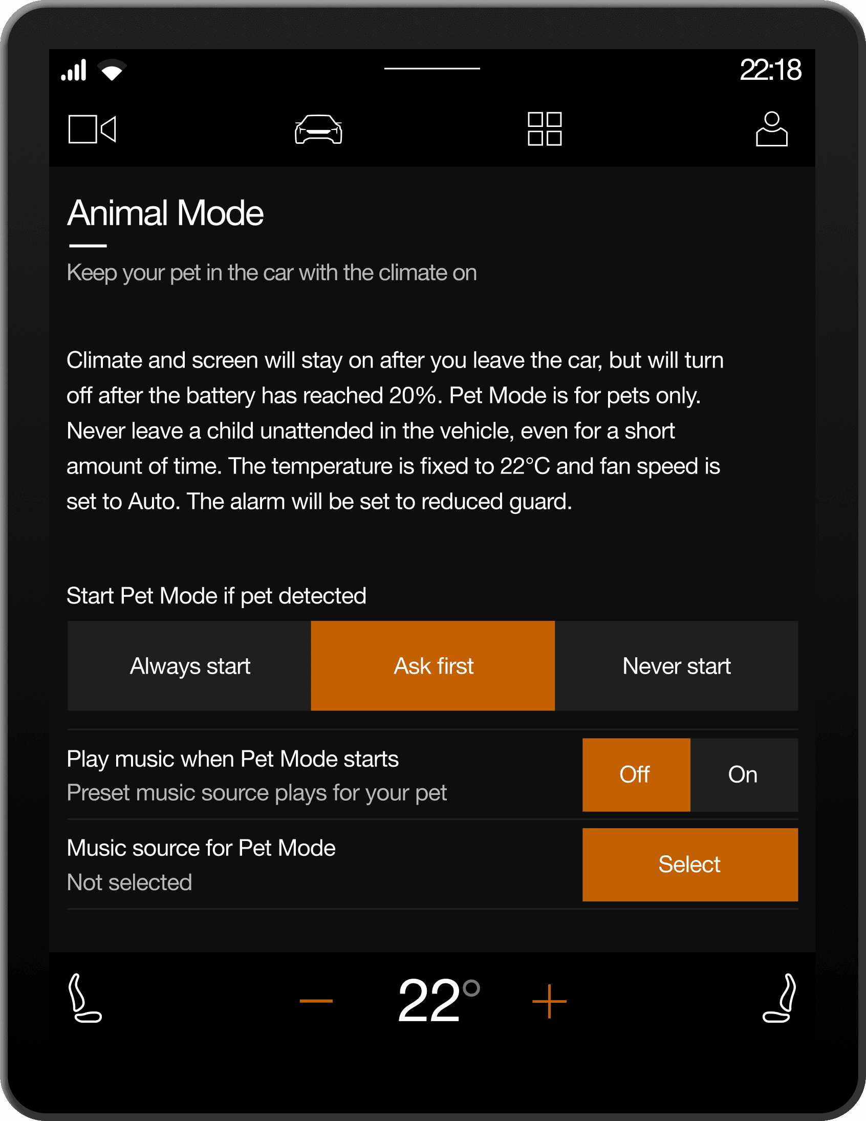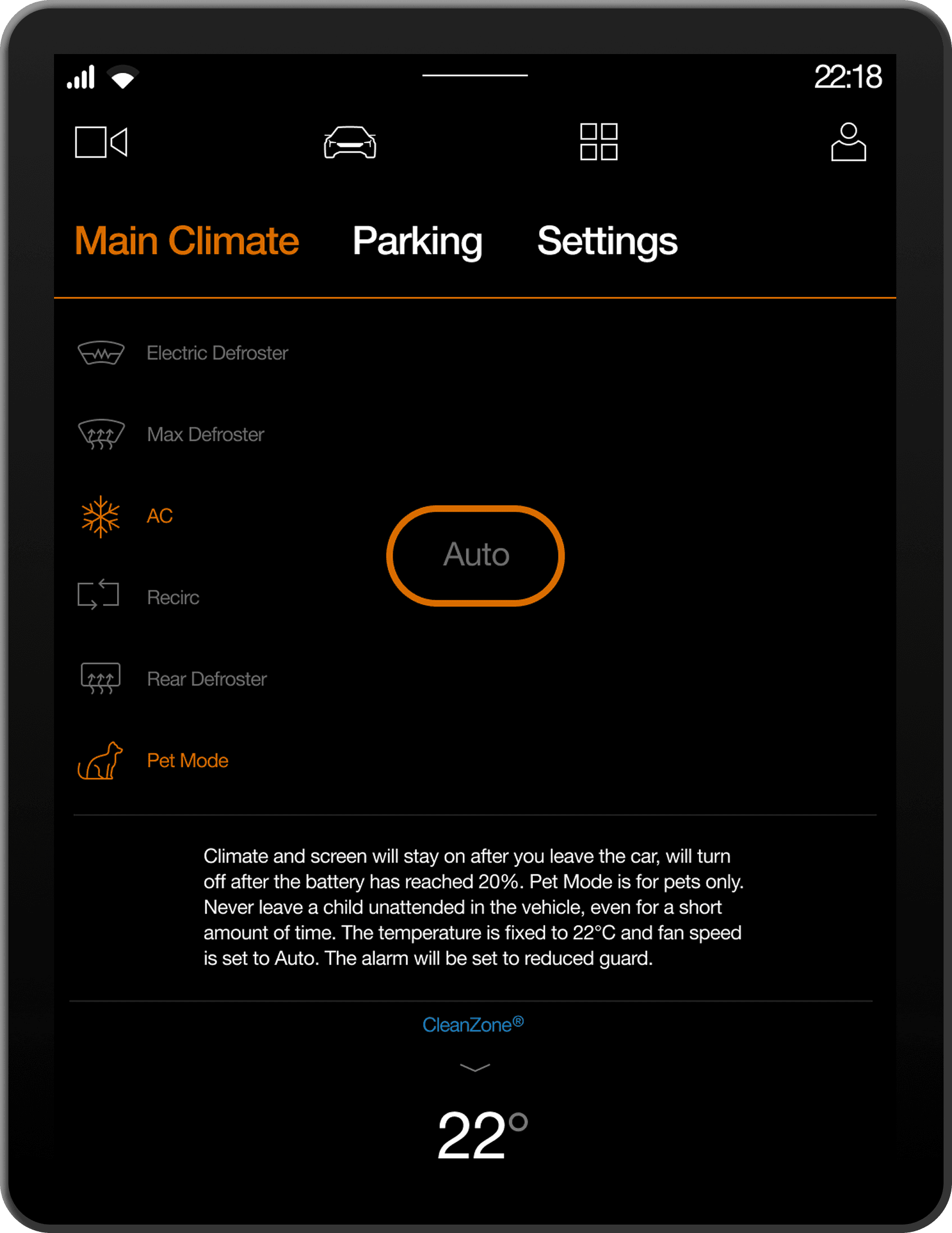 Leaving a pet inside a vehicle introduces safety, legal, and public perception risks. The system needed to maintain a stable interior temperature, clearly communicate status to people outside the vehicle, prevent misuse or unsafe conditions and operate within battery and climate constraints. The feature required coordination between vehicle software, climate systems, battery thresholds, and the in-car interface. Clarity and reliability were critical. The interaction had to be simple. The communication had to be unambiguous.